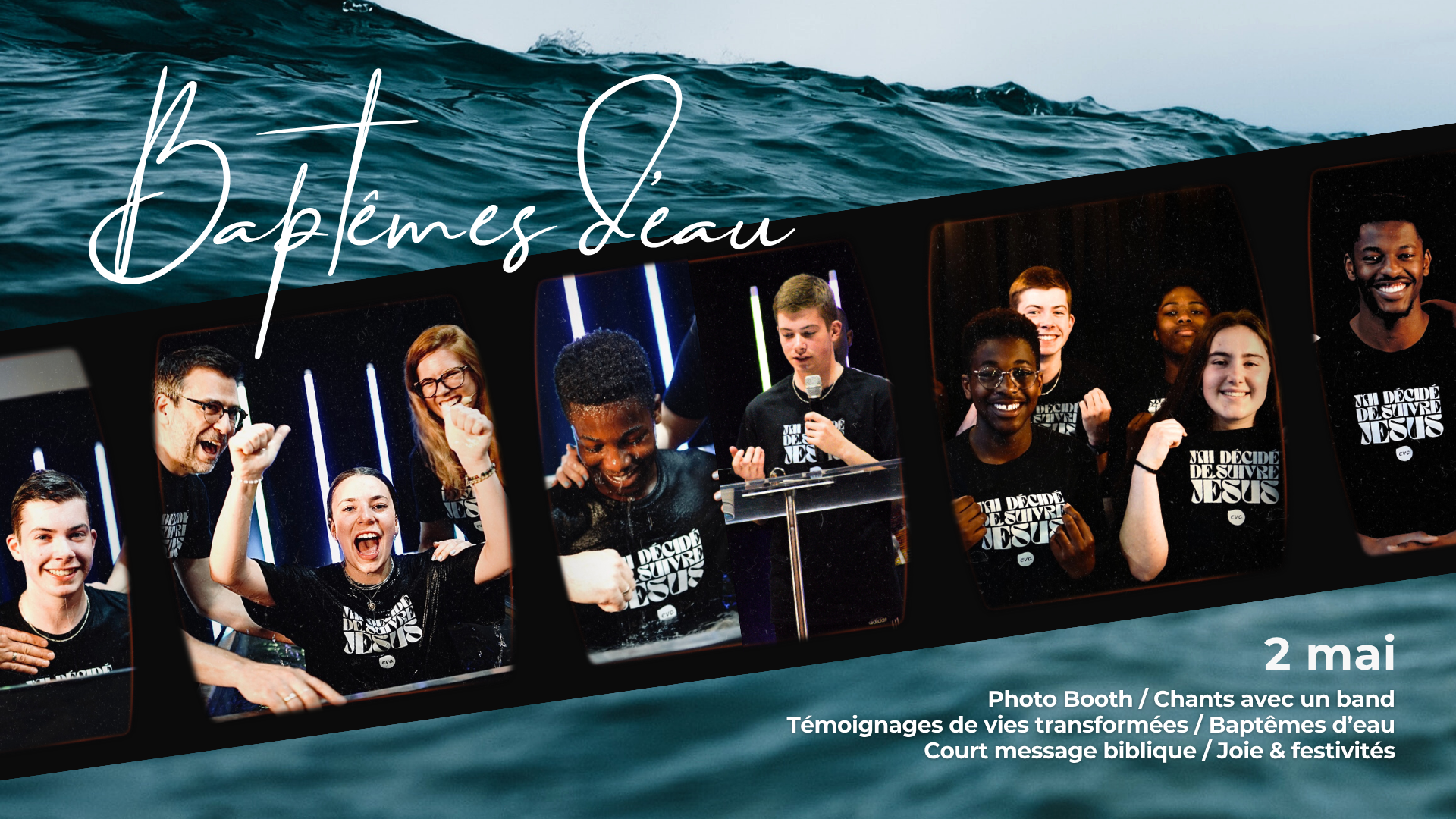 Le samedi 2 mai, rejoignez-nous à 9 h 30 au 1015 rue des Gadelles pour notre célébration hebdomadaire où sera intégrée une séance de baptêmes d’eau. Venez entendre le témoignage de vies transformées par Jésus et découvrir le message de l’Évangile!